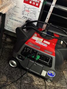 弊社の発電機は、イベント運営に必要な音響機器や看板のライトアップなどの電源として活躍。商用電源と同等の高品質な電気を供給できるインバータ方式である点や、静音性(騒音値54.5~61dB)が評価され、スムーズで快適なイベント運営に貢献できたことを大変嬉しく思います。