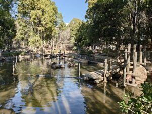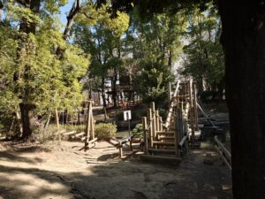 この大森ふるさとの浜辺公園の先には「平和の森公園」と続き、「弓道場」や「相撲場」、「テニスコート」、「フィールドアスレチック」、「ひょうたん池」、「平和の広場」などを備える大きな公園が続きます。